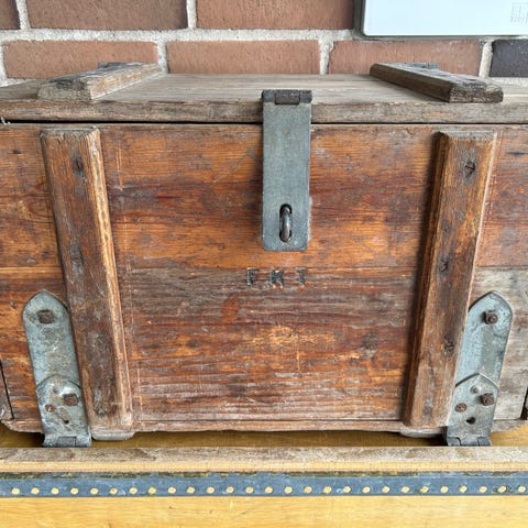 Desværre bærer den præg af fugt og slid, men kan bruges som retro pyntegenstand.