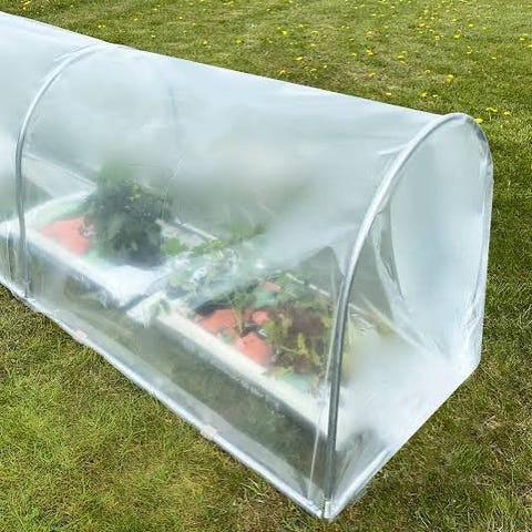 Forspiringstunnel i plast til køkkenhave og blomsterbede. Tunnelen måler ca. 40 x 60 x 310 cm og er velegnet til forspiring af f.eks. kartofler, urter, grøntsager og blomster. Plastmaterialet hjælper med at holde på varmen, beskytter planterne mod let nattefrost og reducerer risikoen for skadedyr. Leveres komplet med metalbuer og snoreluk, så tunnelen kan sættes op over bedet og justeres efter behov.