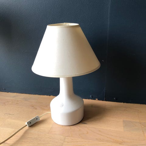 Bordlampe i hvid farve med tilhørende ledning. Lampen har en enkel, cylindrisk fod og en klassisk lampeskærm. Velegnet som belysning på bord, reol eller sengebord i stue, soveværelse eller kontor. Tilsluttes almindelig stikkontakt via medfølgende ledning. Pæretype og watt afhænger af valgt lyskilde med passende fatning til lampen.