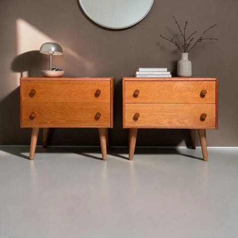 Teak teaktræ vintage dansk design skab skænk kommode retro midcentury Severin nightstand natbord caffetable sofabord sengebord