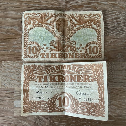 Danmark, sedler, 1972, 10 kr sedel 1972 stand 0, til 100 kr