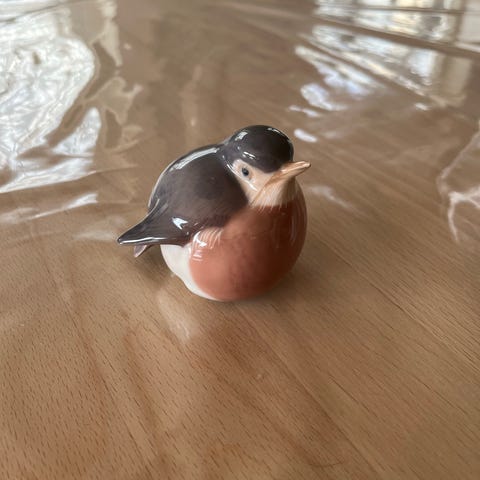 Bing & Grøndahl pingvin figur i porcelæn. Figuren forestiller en stående pingvin i nuancer af sort, hvid og beige. Undersiden er mærket med Bing & Grøndahls stempel og modelnummer.