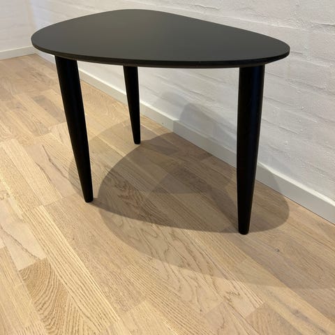 IKEA sofabord designet af Alfred Homann. Bordet har en trekantet bordplade med afrundede hjørner og en central søjle med trebenet fod. Farven fremstår som sort. Velegnet som sofabord eller sidebord i stue eller opholdsrum.