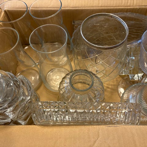 Krukker, fade, gryder, kopper osv. kan hentes til evt loppemarked.