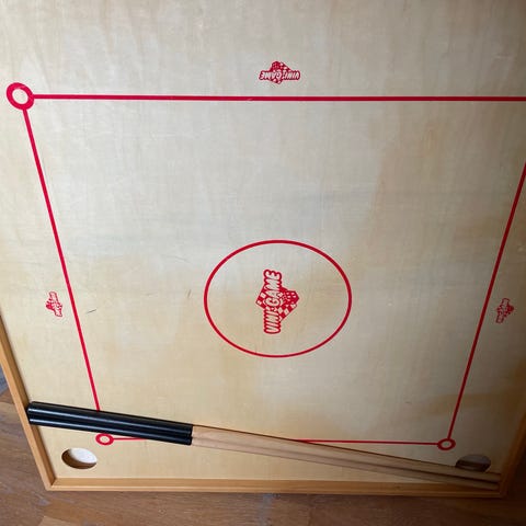 Klassisk bobspil, m. plade og stativ. Mål 88 x 88, h. 84 cm.