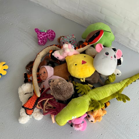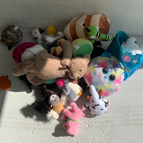 Sæk med diverse bamser sælges billigt.