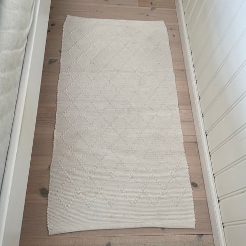 Fint lille tæppe som måler ca. 55x87. Er brugt, men i fin stand.