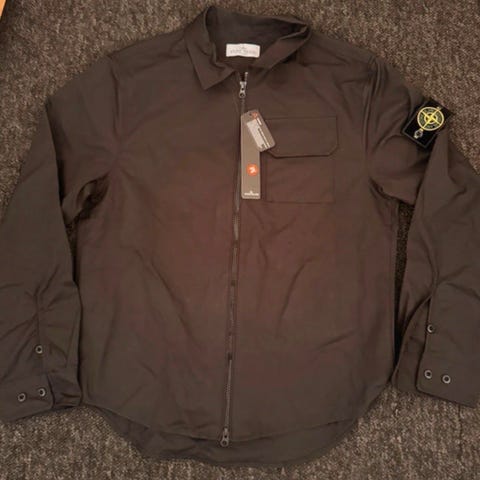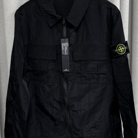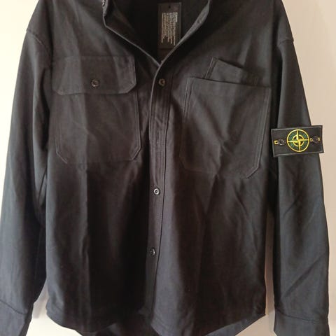 Stone Island jakke til herre i størrelse M. Jakken er sort. Den har gennemgående lynlås foran og krave. Der er brystlommer med klap på fronten samt det karakteristiske Stone Island-logo på ærmet. Velegnet som yderjakke i hverdagen.