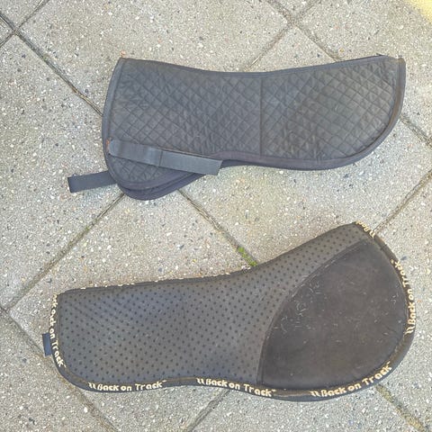 Premier Equine sadelpad i sort. Padden har formskåret design og er forsynet med blød polstring/fleece ved forkant og bagkant. Overfladen har perforeret struktur, som kan bidrage til ventilation under sadlen. Velegnet som underlag mellem hest og sadel for ekstra komfort og trykfordeling.