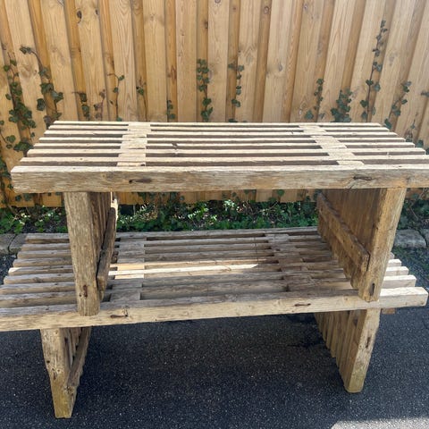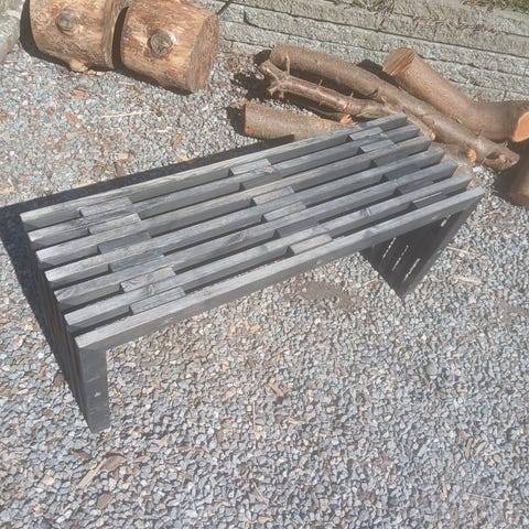 Fin, sort trallebænk i god stand. Den er et år gammel og har stået under halvtag. Den er 110 cm lang, 46 cm høj og 32,5 cm dyb.