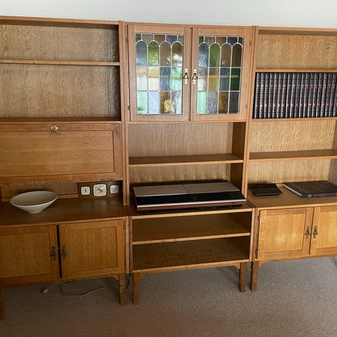 Reolsektioner fra Jens Hansen Møbelsnedkeri. Med tappede hjørner. Klassisk håndværk i rigtig god stand. Fra rygefrit hjem. 2 styk. Med Ophæng. Prisen er pr styk