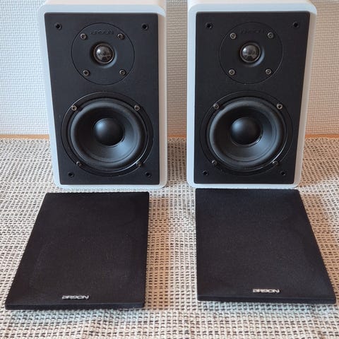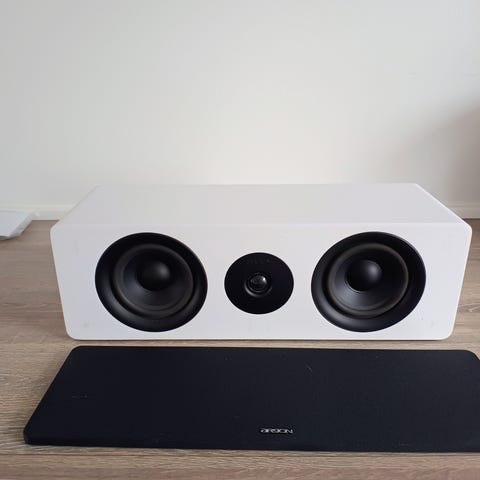 Argon højttalersæt i hvid med sort frontstof. Sættet består af flere højttalere i ens design, velegnet til brug i hjemmebiograf eller stereoanlæg. Kabinetterne er rektangulære med afrundede kanter og frontstof, der kan beskytte enhederne. Kan tilsluttes en kompatibel forstærker eller receiver via bagtilslutninger (ikke vist på billederne). Egnede til indendørs brug som del af et lydsystem i stue eller lignende rum.