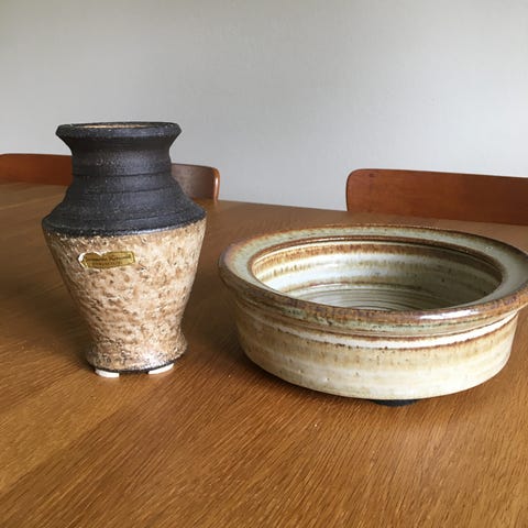 Fade, vase, Løvemose Keramik, Smukt retro fad, askebæger og vase i keramik fra Løvemose. Se mål på billeder. Sendes desværre ikke, men fleksibel afhentningstid.