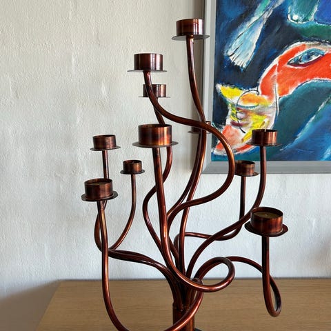 Smuk formelig 8-armet lysestage i teaktræ. Dansk design fra 60’erne.