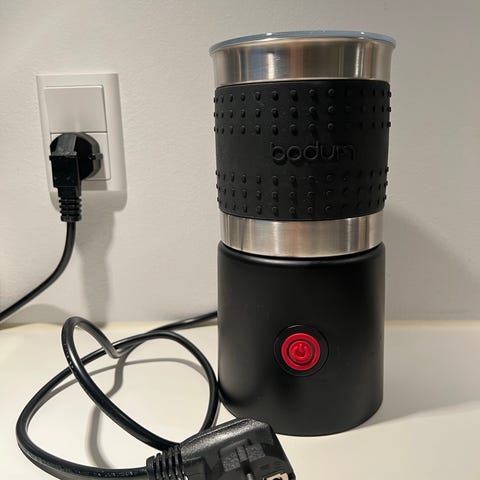Stelton RIGTIG mælkeskummer i blå farve. Elektrisk model med aftagelig bund og strømledning med stik. Beholderen har non-stick inderside og integreret pisker i bunden. Låg i gennemsigtig plast med tætsluttende kant. Velegnet til opskumning og opvarmning af mælk til kaffe- og kakaodrikke i hjemmet.