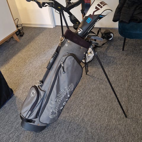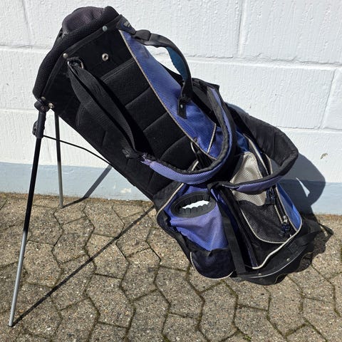 Tasken har integreret stativ med to ben, bærestropper og flere lynlåslommer til opbevaring af udstyr og tilbehør. Øverste del har opdelt rum til organisering af golfkøller. Egnet til brug på golfbanen som bærebag med stativfunktion. Vandtæt.