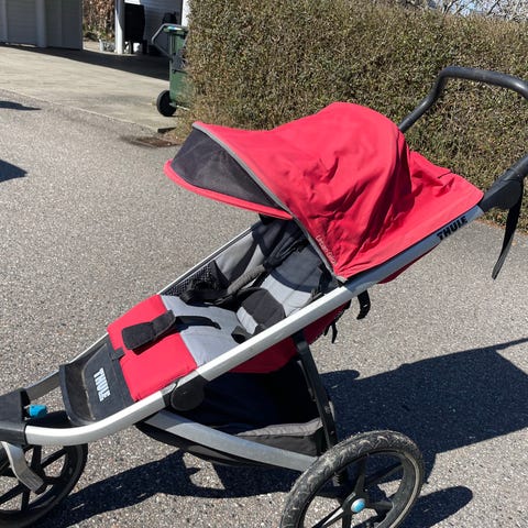 Thule løbevogn/klapvogn til 2 børn. Kan skifte mellem stort forhjul eller to små klapvognshjul foran. Vognen har stort opbevaringsrum bagpå og sæderne kan lægges tilbage - også et sæde af gangen, så 1 barn kan sove. Der er solsejl og regnslag. Vognen er generelt velholdt, men der er brugsspor, da den er blevet brugt flittigt til to drenge i alt slags terræn😊