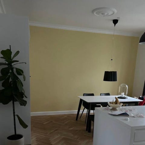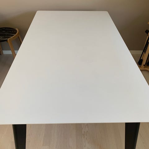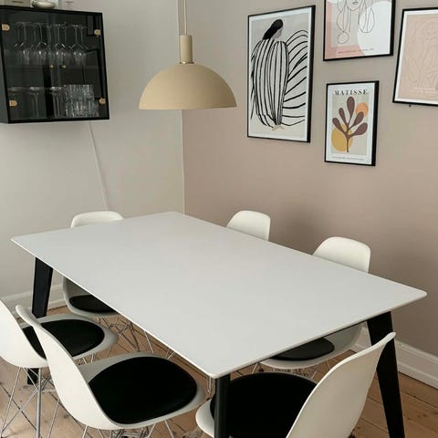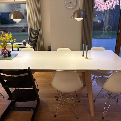 Hvidt og træ farvet stort spisebord fra Ilva.