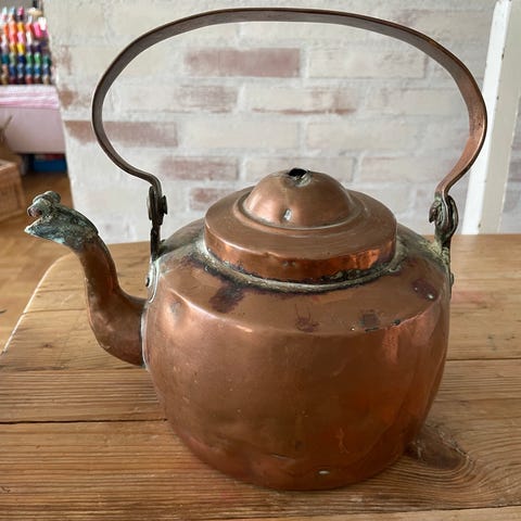 Stor kobberkedel med stempel i hanken, se foto. Tung og solid