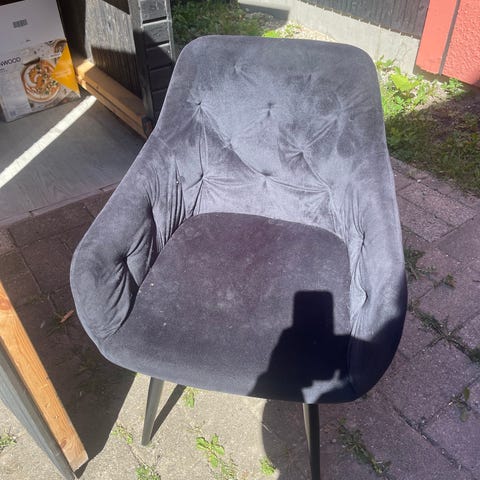 6 Spisestole i sort velour sælges i virkelig god stand. Stolene er fra moreland og ny pris er 1800 kr samlet, de er brugt få gange, da vi primært spiser i stuen, og derfor ønsker jeg en fair pris for dem.