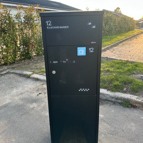 Allux postkasse i sort metal med lås og nøgle. Klassisk model til montering ved indkørsel, husmur eller lignende. købt i Johannes Fogh til vores sommerhus. Har stået i vores skur - aldrig sat op og brugt.