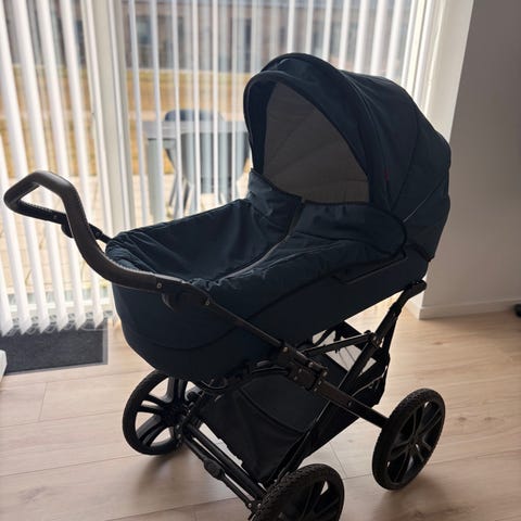 Odder barnevogn i sort. Klassisk liggedel med kaleche og tilhørende overdel/klap til at lukke vognen til. Vognen har fire hjul, hvor de forreste er mindre og drejelige, og de bagerste er større for stabil kørsel. Under stellet er der en opbevaringskurv til tasker eller indkøb. Håndtaget er buet, ergonomisk udformet og kan justeres. Se billeder for detaljer. Fra April 2024 og kun brugt til et barn. Er i meget flot stand og næsten som ny. Aldrig stået ude og fra ikke ryger og dyrefrit hjem.