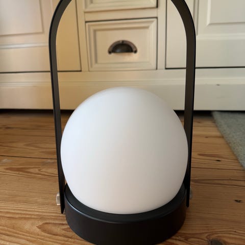 God lampe fra Audo til diverse brug. Den kan fx. Tages med ud i haven/på altanen. Har tre lysstyrker.