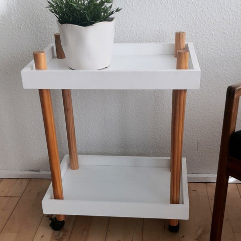 Kunstfiner og stål. B56 x H69 x D40 cm