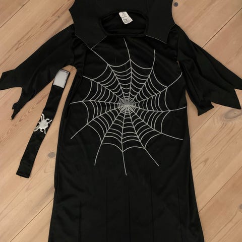 Sort halloweenkostume str 180. Brugt få gange. Har ikke været vasket. Fra ikkerygerhjem uden husdyr. Kan evt sendes jf gls takster.