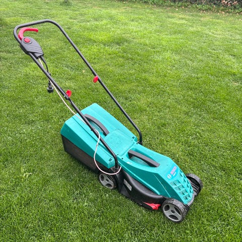 Bosch ProSilence plæneklipper i grøn og sort. Elektrisk model med ledning, egnet til klipning af mindre til mellemstore græsplæner. Plæneklipperen har fire hjul og højdejusterbart håndtag. ProSilence-teknologien er konstrueret til at reducere støjniveauet under brug. Velegnet til almindelig havebrug på plane græsarealer.