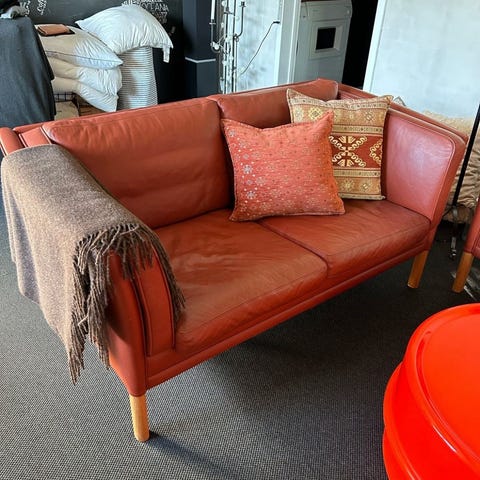 2 og 3 personers sofaer i rødt læder sælges samlet eller hver for sig