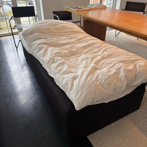 seng med opbevaring. Sengen har en madras øverst og et opbevaringsrum under liggefladen, som kan løftes op. Velegnet som enkeltseng eller gæsteseng, hvor der er behov for ekstra opbevaringsplads i soveværelse eller gæsteværelse.