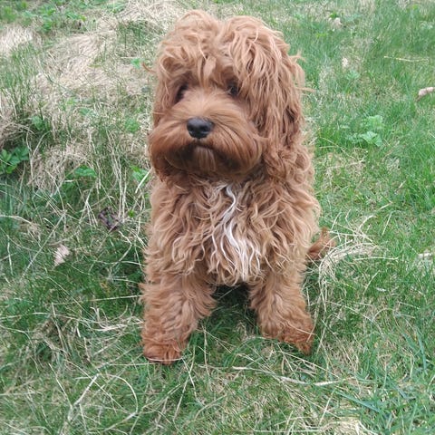Han er F1B som betyder at han er 3/4 puddel og 1/4 cocker spaniel. Han er lidt stor ift. størrelsen normalt.