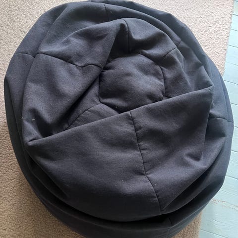 Fin og behagelig puf/sækkestol i varm gul/grøn farve. Perfekt som ekstra siddeplads eller fodstøtte i stuen.