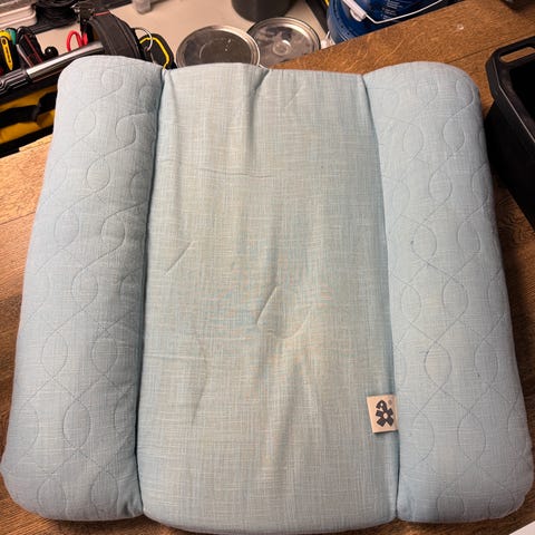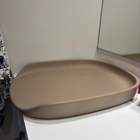 Sebra puslepude i neutral farve. Puslepuden er formet med let forhøjede kanter hele vejen rundt. Overfladen er glat og kan tørres af med en fugtig klud. Velegnet til brug på puslebord eller anden plan overflade til bleskift og påklædning af baby.