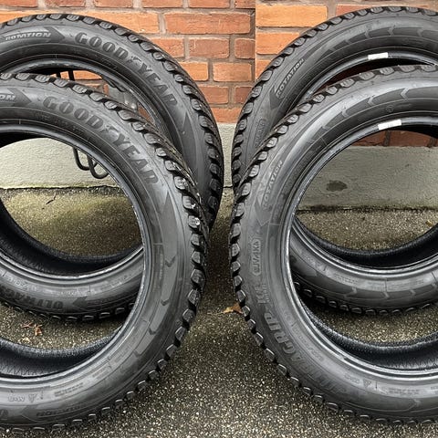 Dækkene er fra 2023, så stadig relativt nye.