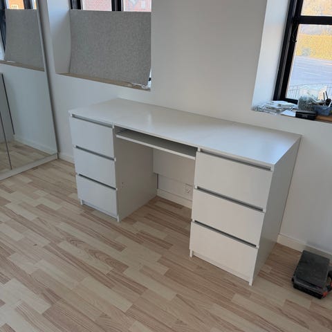 Et fint arbejdsbord med ben der kan indstilles i højden. Bordpladen fremstår ny da bordet ikke er blevet benyttet.