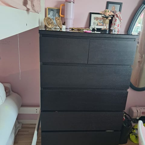Der er 3 stk kommoder med 4 skuffer som er 1 meter høje, 80 cm bredde, og 48,5 dybe. Der ud over er der en med tre skuffer som er 78 cm høje som ellers har samme mål. Skal afsættes inden søndag d. 12. April eller tyder de på genbrugen - kan også afhentes en af gangen. De er slidte men fungerer find