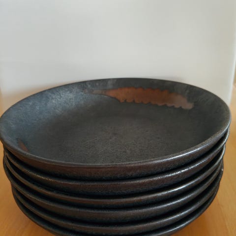 4 stk blå glaseret middagstallerkner i stentøj de måler Ø 27cm