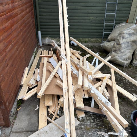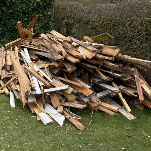 Affaldstræ til brænde. Mange forskellige længder. Med søm. Gratis.