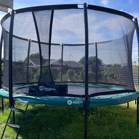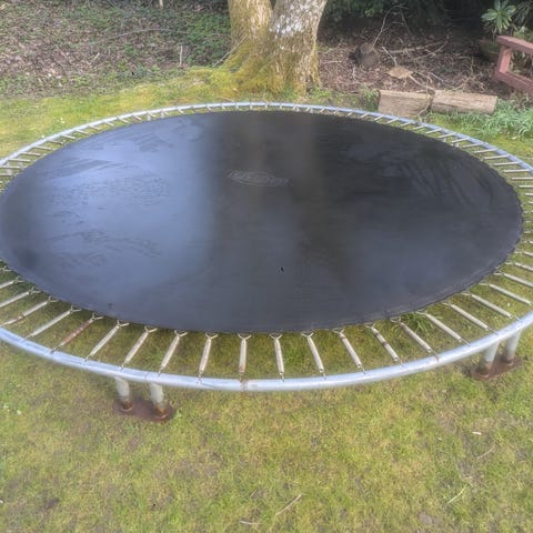 BERG Inground Champion 430, nedgravningstrampolin. Diameter 4,3 meter. Solid kvalitetstrampolin. Ca. 8 år gammel med brugsspor. 2 små huller i dugen, men de er ikke blevet større de sidste par år. Nypris ca. 7500 kr. Virker perfekt. Byd.