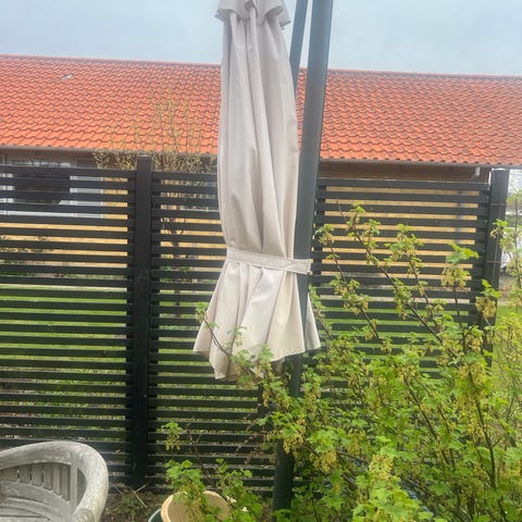 - Robust stel: Den stærke, pulverlakerede jernstang samt de slidstærke ribber gør haveparasollen særdeles stabil og robust.