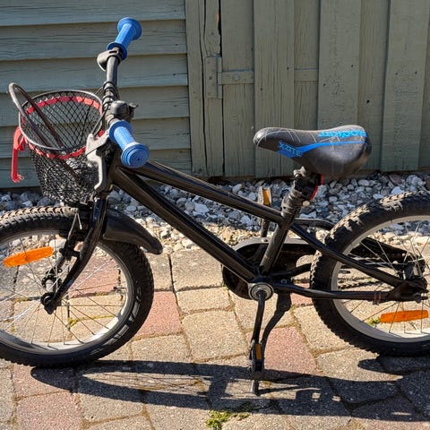 Kokua 20” børnecykel. Medfølger lås m 2 nøgler. For og bagrefleks. Ringeklokke. Skærme for og bag. Støtteben. Altså alt nødvendigt tilbehør.