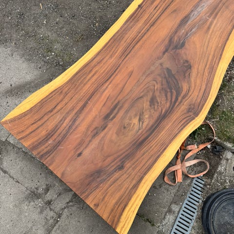 Solid træbordplade i brun træfinish. Velegnet som bordplade til fx spisebord, skrivebord eller arbejdsbord. Overfladen har et rustikt trælook med synlig årestruktur. Leveres som løs plade klar til montering på eget stel eller ben.