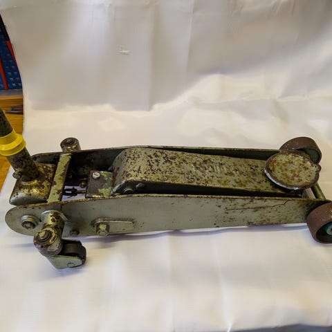 Det er en antik donkraft fra Compac, produceret i Juelsminde. Min far fik den i 1960èrne, så det er en antikvitet. Den har virket upåklagelig hele livet og virker fortsat. Jeg mener den kan klare 1.500 kg. men er usikker. Den er perfekt til dig som laver veteranbiler.