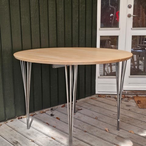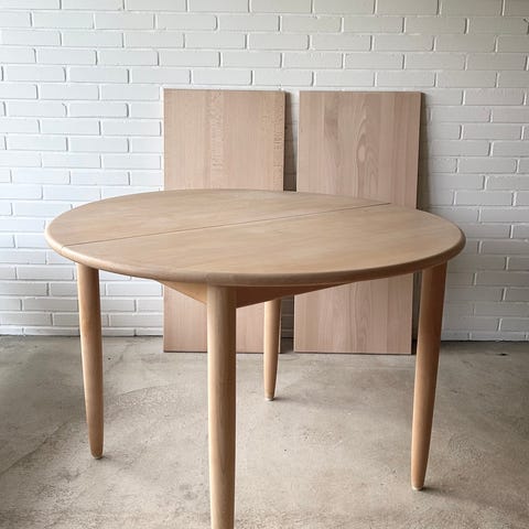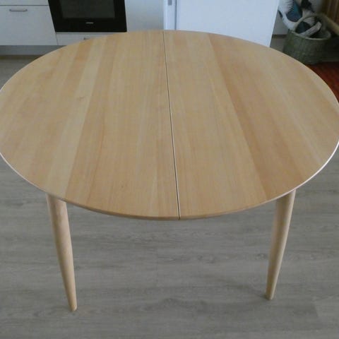Haslev spisebord 105x200cm. I god stand og med tilhørende tillægsplade, som kan forlænge bordet, så det måler 248 cm.