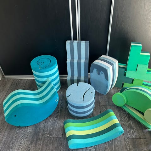Forskellige bobles med masser af leg i. Godt brugt men meget funktionelt. Fx. Slangebobles med fisk der kan bruges som bord og stol eller slange og rullebræt til at ræse rundt med mm.
