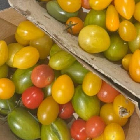 Jeg har en bred vifte af tomatsorter, i størrelserne cherry, salattomat, bøf og blommetomater. Farveskalaen er ligeledes bredt repræsenteret. 10 kr. stykket.