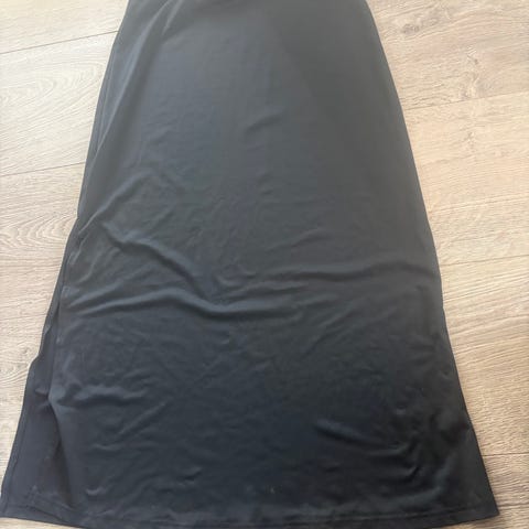 H&M nederdel i sort til kvinder i størrelse L. Klassisk, knælang model med figursyet pasform. Nederdelen har lynlås bagpå og slids for bedre bevægelsesfrihed. Velegnet til både arbejde og hverdag afhængigt af styling.