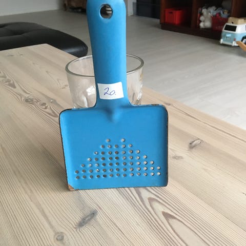Kogeblus 21,5 cm højt, 26 cm bredt.Lågen til kammeret lukker ikke helt til når det lukkes.